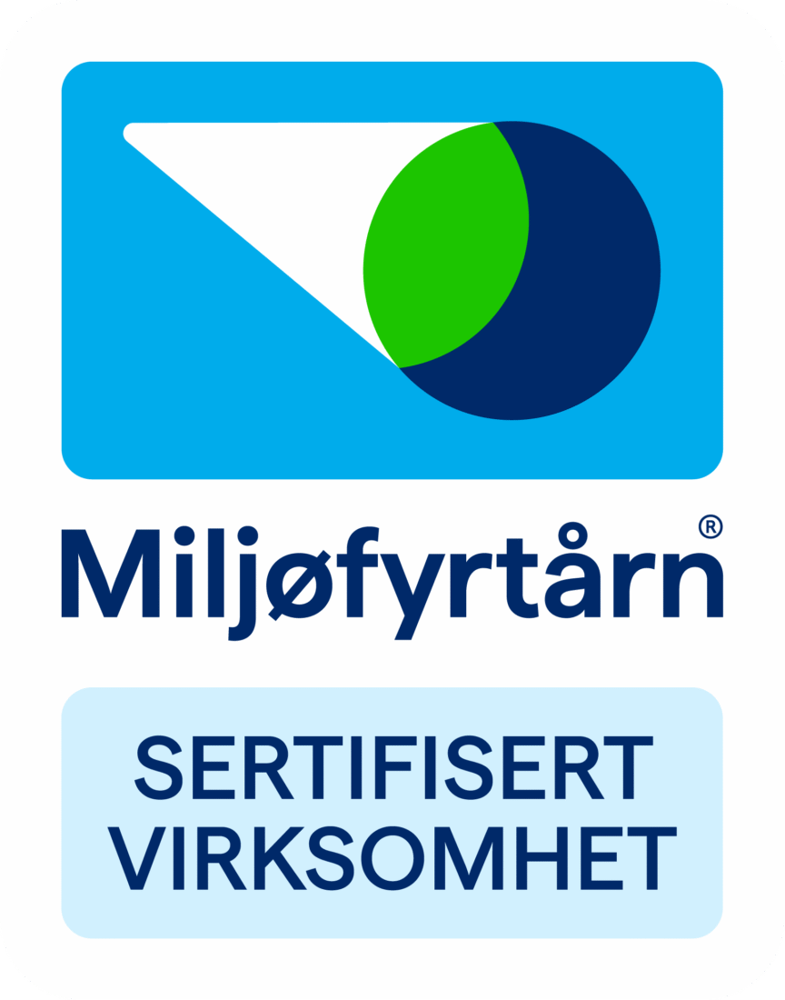 En viktig del av vårt arbeid er å være Miljøfyrtårn-sertifisert. Dette innebærer at vi har etablert et miljøledelsessystem som styrer klima- og miljøarbeidet og bidrar til kontinuerlig forbedring.